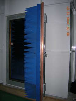 一个 EUT 入口门; 1.5 x 2.5 m 单扇机械执行机构, 装上了一个 开关。连接互锁系 统以便放大器 能自动 断电.